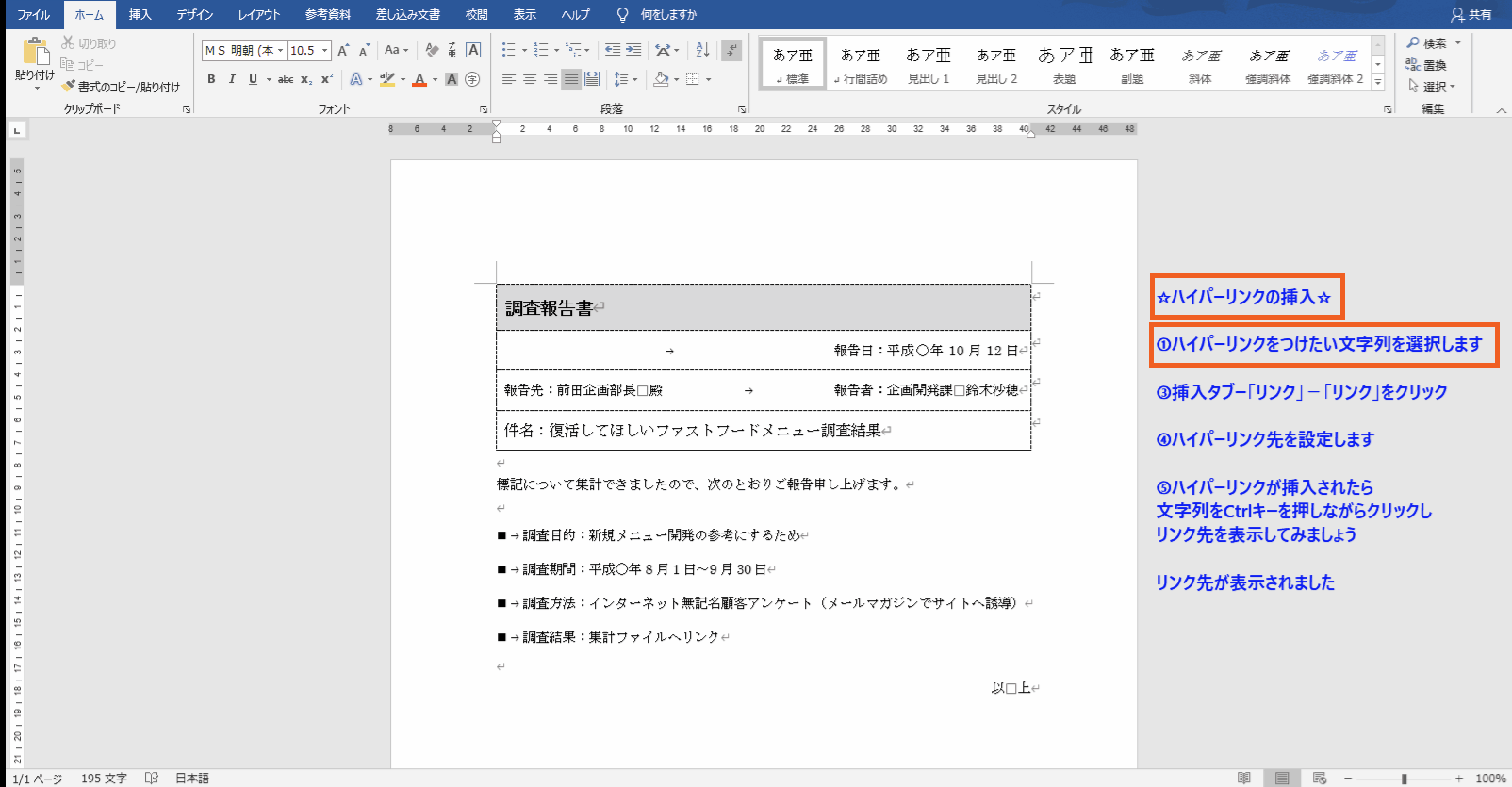 ☆ハイパーリンクの挿入☆