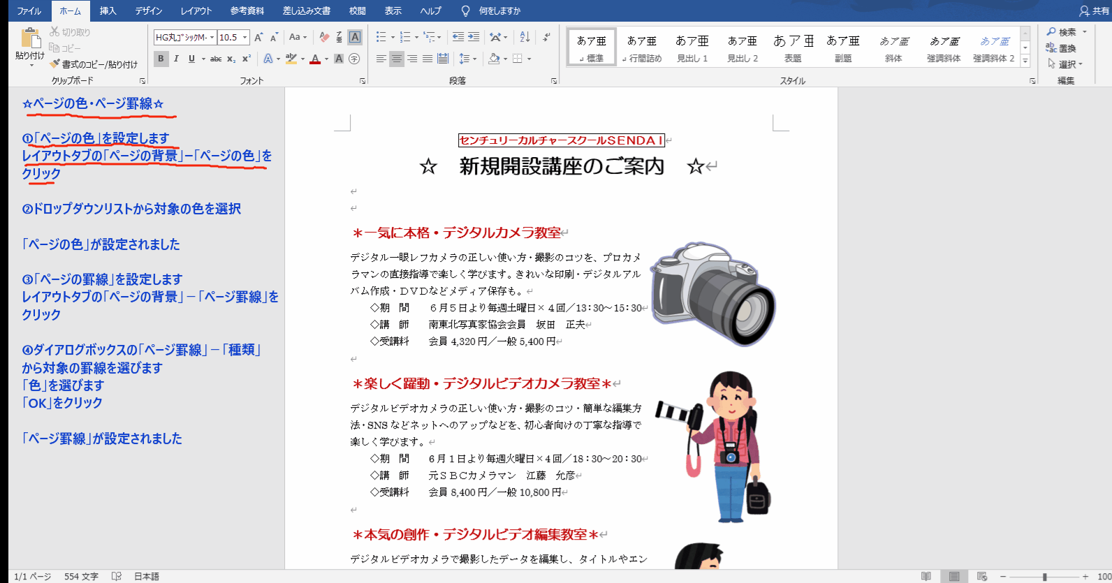 ☆ページの色・ページ罫線・入力オートフォーマット(罫線)☆