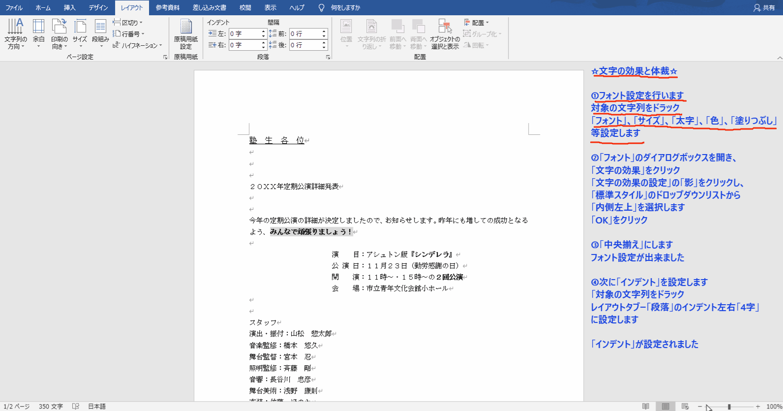 ☆文字の効果と体裁・2段組み・段区切り☆