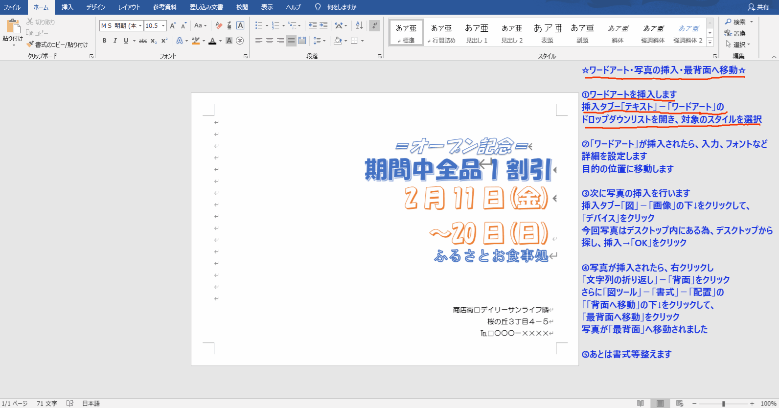 ☆ワードアート・写真の挿入・最背面へ移動☆