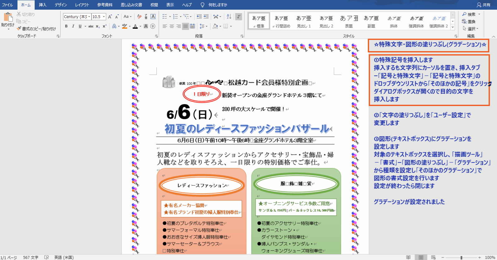 ☆特殊記号・図形の塗りつぶし(グラデーション)・図形(矢印)☆