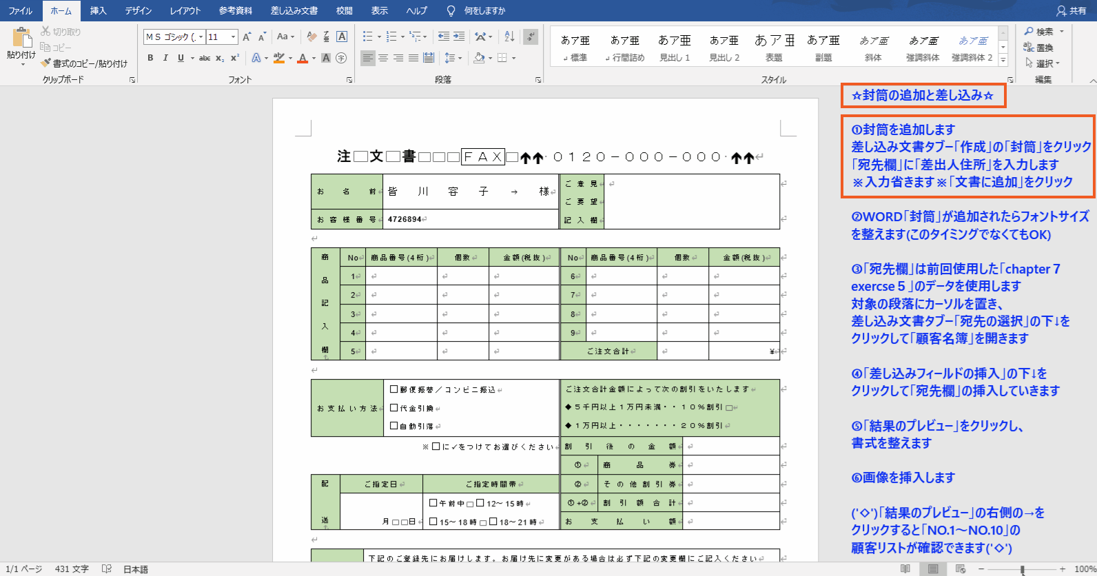 ☆封筒の追加と差し込み☆